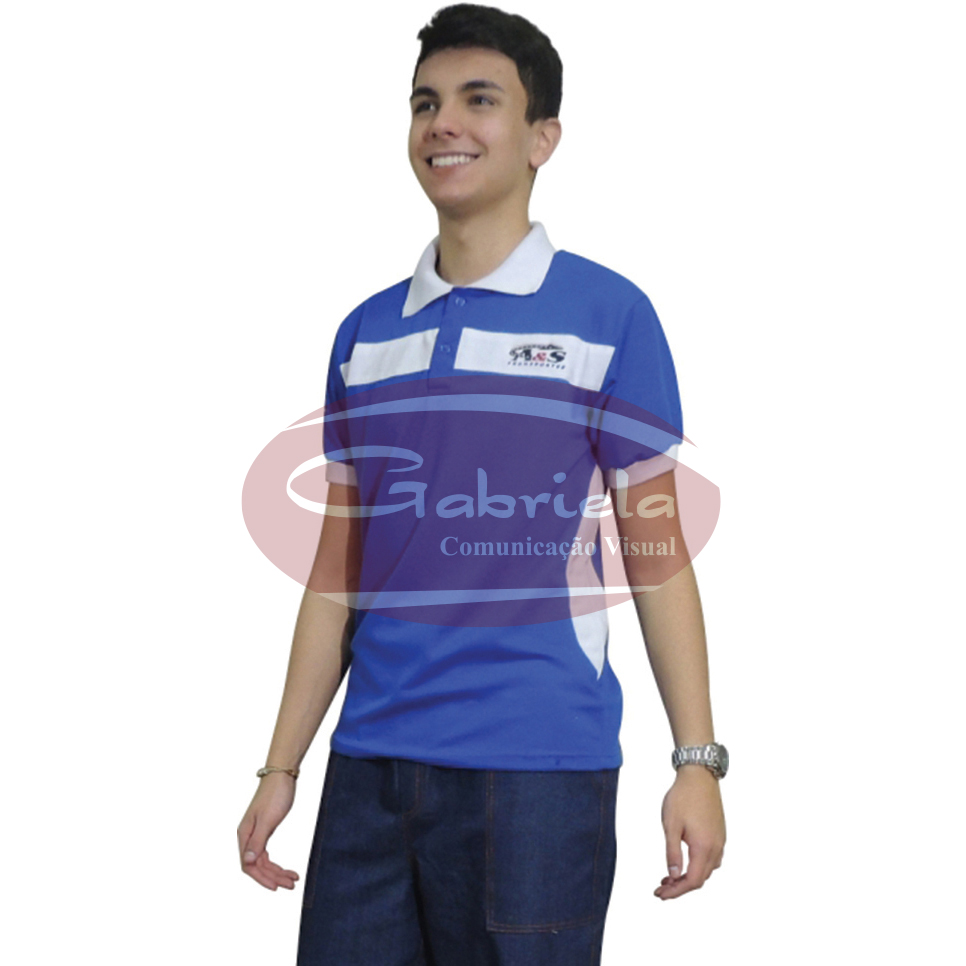 Camisa polo masculino, gola, braçadeiras coloridas, recortes frontal e laterais.